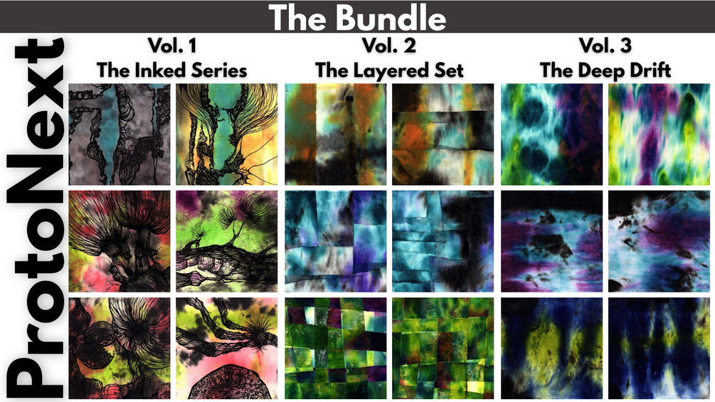 This curated collection brings together the first three volumes of ProtoNext—a growing series of abstract, printable wall art created from over 160 original acrylic and ink paintings.
